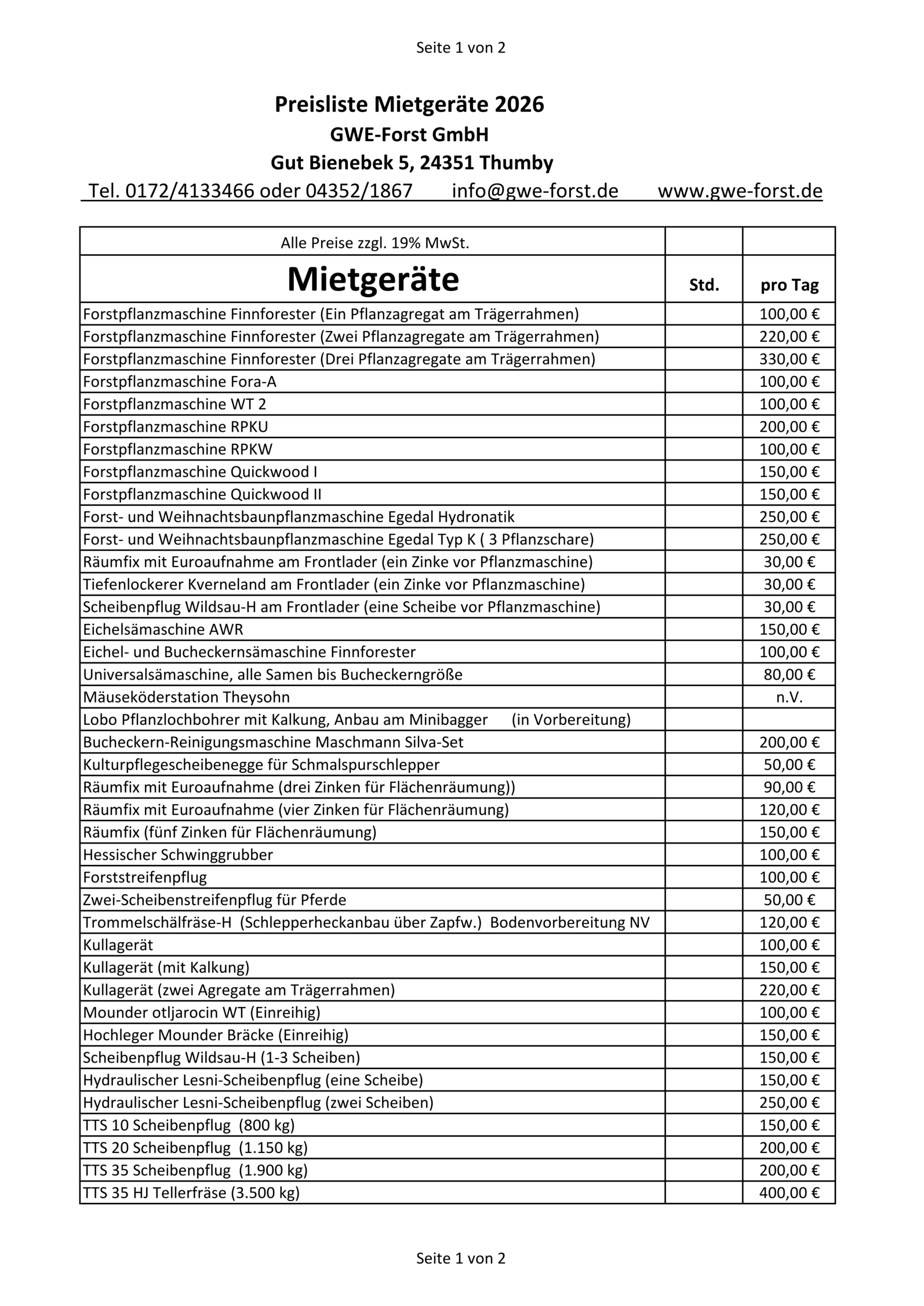 Hier sind unsere Preislisten für Dienstleistungen und Mietgeräte. Bitte klicken Sie darauf, um die jeweils aktuelle Version zu bekommen.